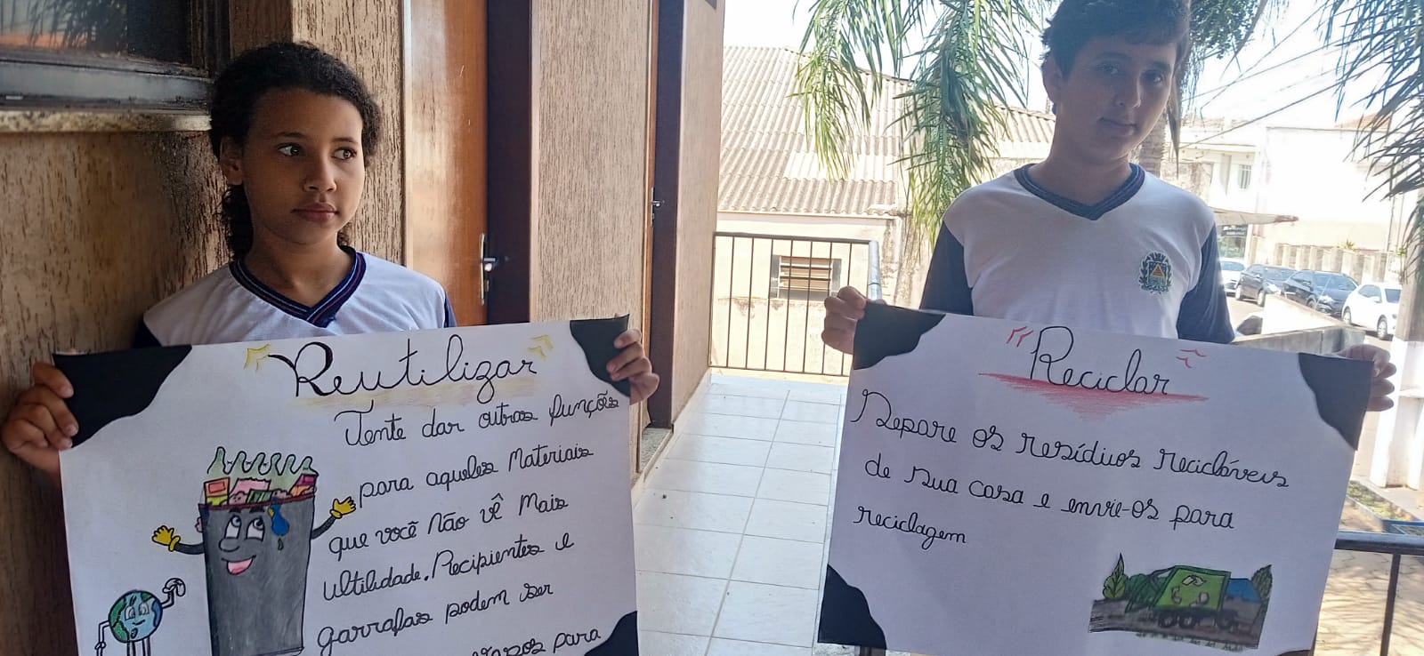 Alunos da Escola Municipal Maria Gomes Teixeira apresentam projeto sobre Coleta Seletiva em Sertanópolis PR