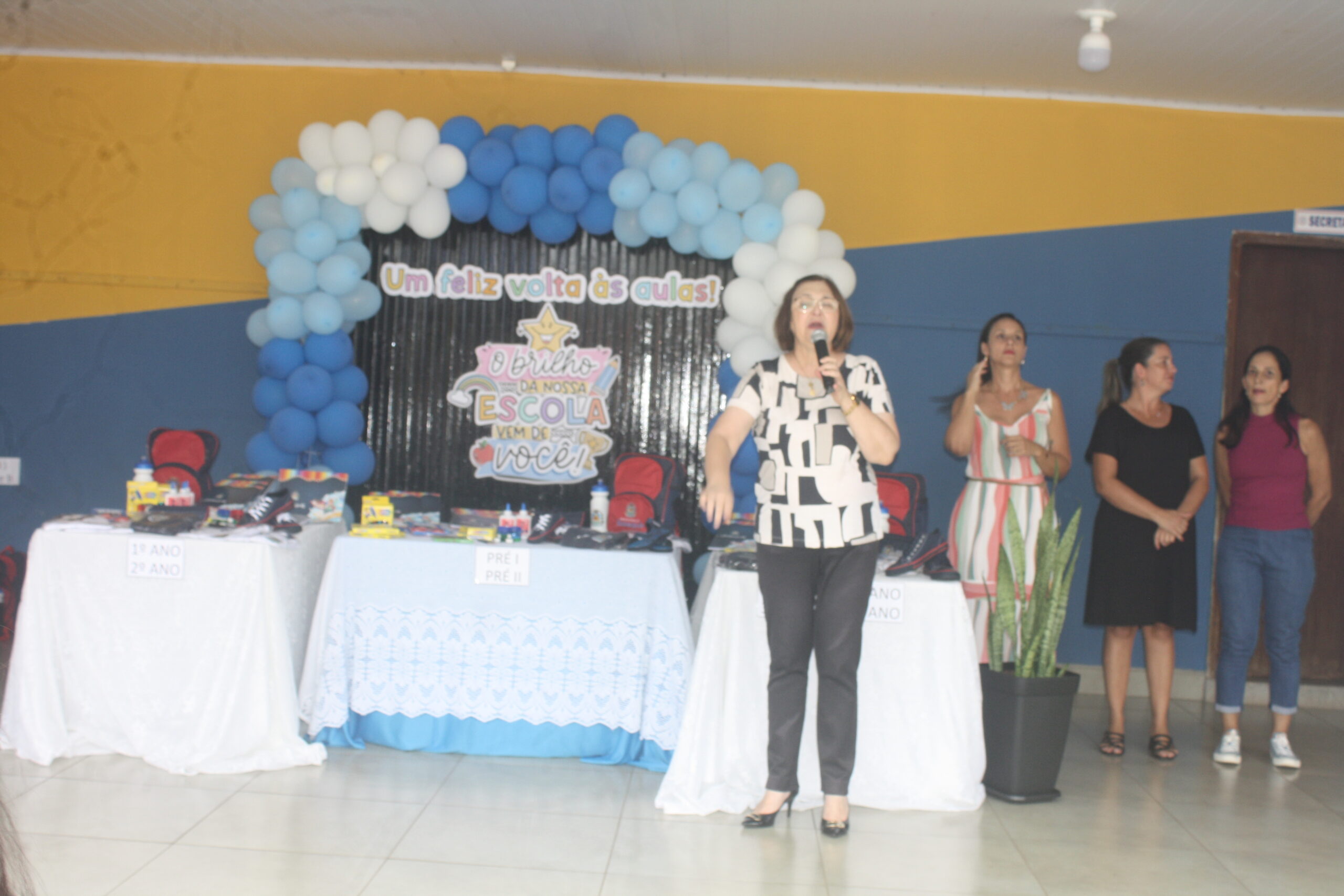 Ainda em seu discurso, Ana Ruth pediu uma salva de palmas para os professores e as Diretoras pelo trabalho que tiveram, pois toda a organização dos Kits foram realizadas por elas. ” Temos que ter o reconhecimento para esse pessoal que trabalha, que tiraram as férias mas estão aqui para cumprir isso para vocês pais e alunos”. Disse Ana Ruth na escola Maria Gomes Teixeira.