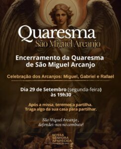 Nesse dia 29 de setembro, em todo o Brasil, é realizado pela comunidade católica e seguidores religiosos o encerramento da Quaresma dedicada ao Arcanjo São Miguel.
