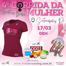 Já estão abertas as inscrições para a 4ª corrida da mulher em Sertanópolis. A corrida será realizada no domingo, 17 de março e as inscrições podem ser feitas através do site https://www.tvcomrunning.com.br/