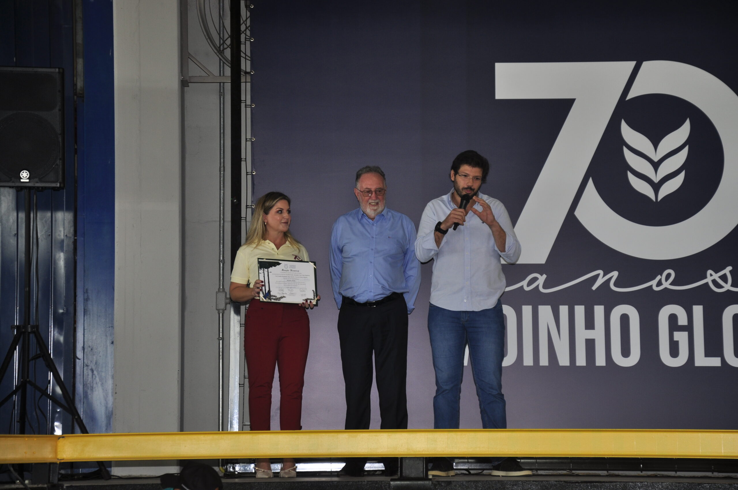 A Presidente do Moinho Globo, Paloma Venturelli informou o orgulho que tem da cidade de Sertanópolis e alegria de poder estar celebrando os 70 anos do moinho globo.