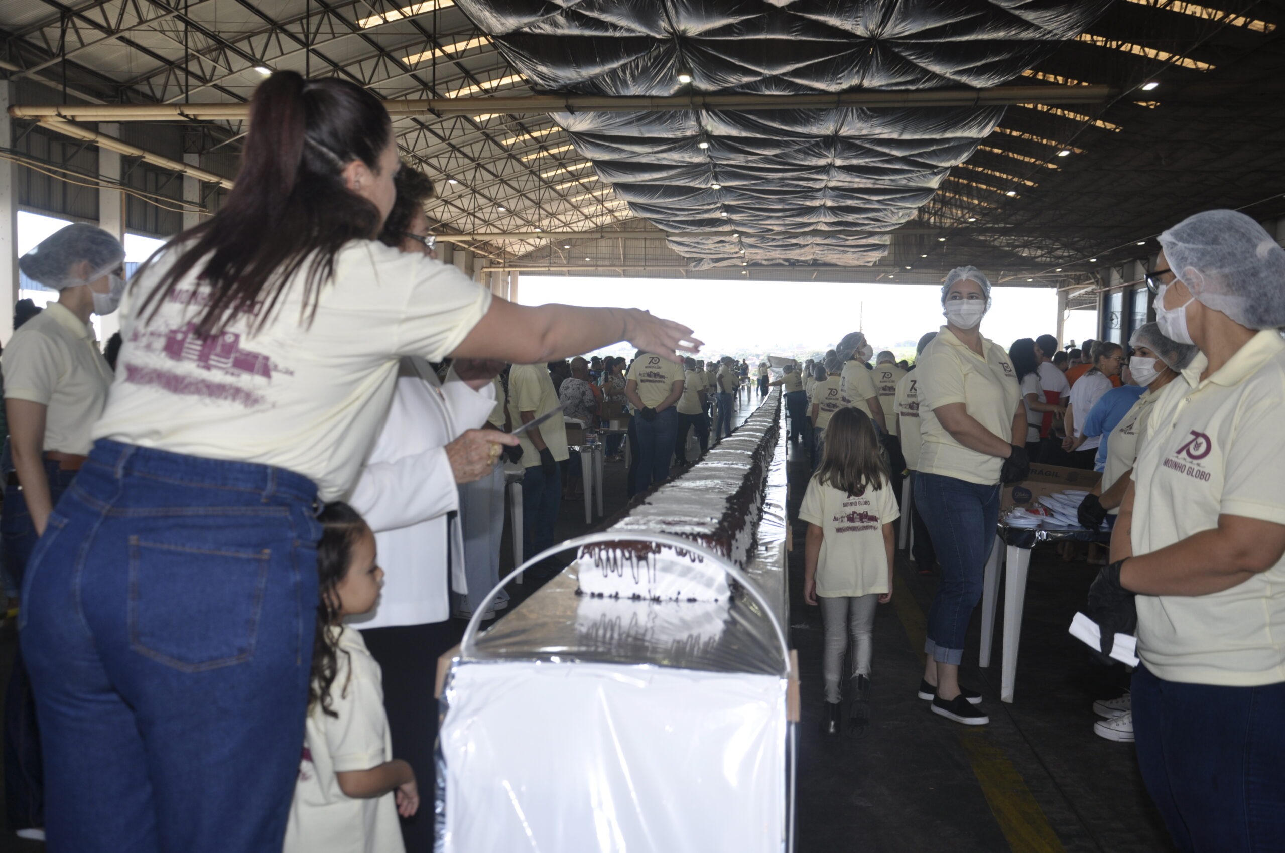 O Moinho Globo, de Sertanópolis, comemorou nesta quinta-feira (25/04) 70 anos de operação. Para marcar o aniversário, a empresa serviu à comunidade de Sertanópolis um bolo de 70 metros de comprimento e cerca de 800 quilos, com recheio sabor cookies and cream, o qual foi montado e distribuído no pátio da indústria.