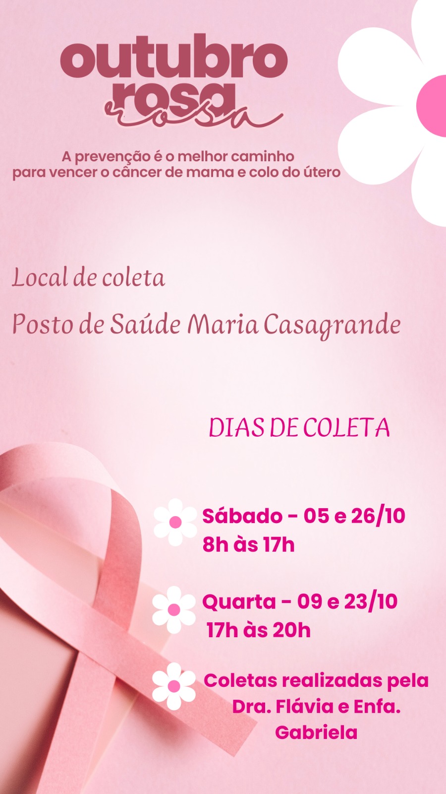 As coletas serão feitas pela Dra. Flávia e pela Enfa. Gabriela.