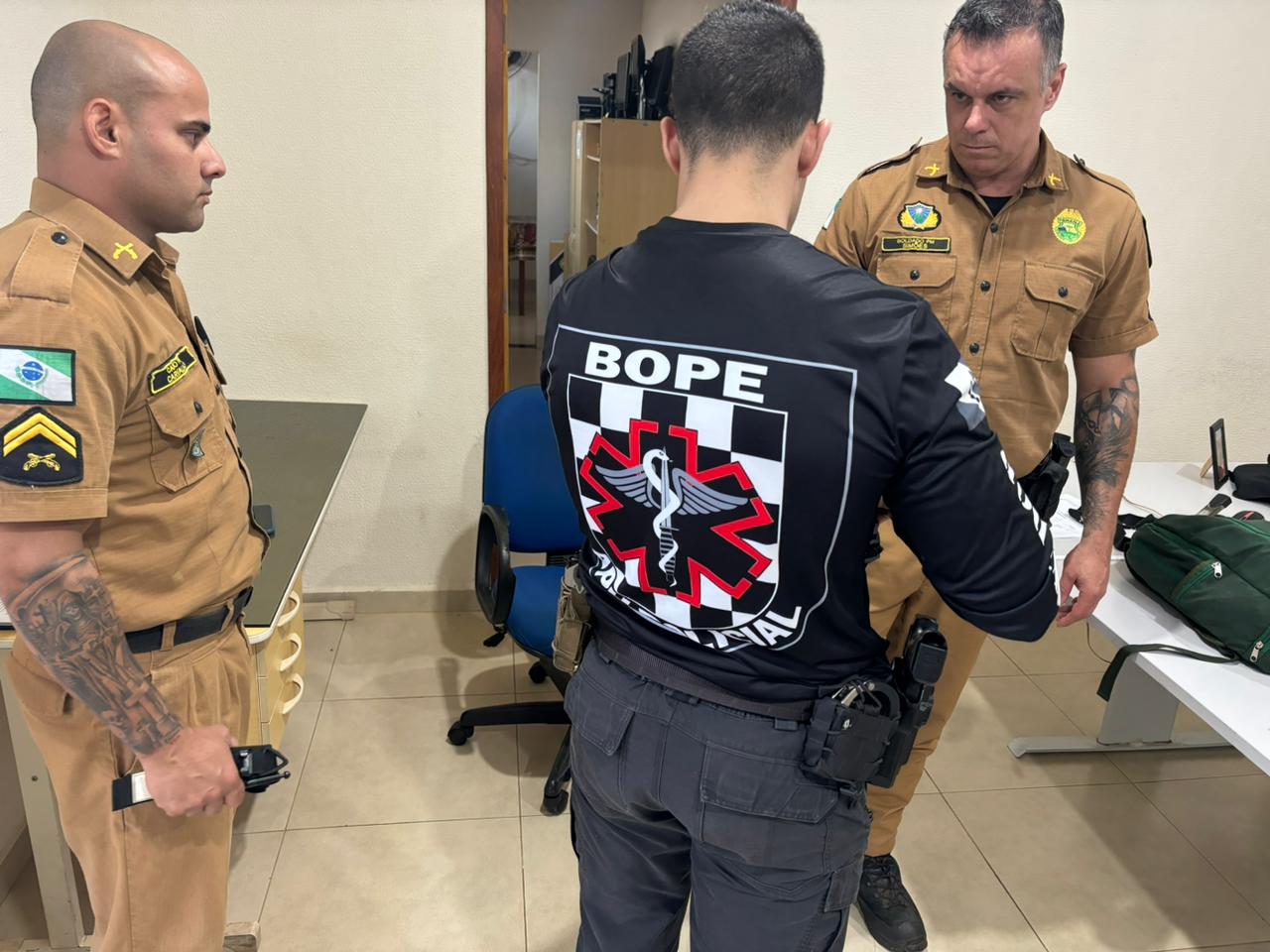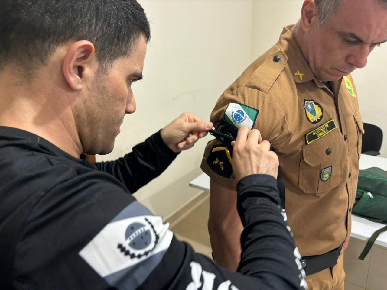 Policiais Militares de Sertanópolis estão passando por um treinamento de primeiros socorros policial de aplicação de torniquete.