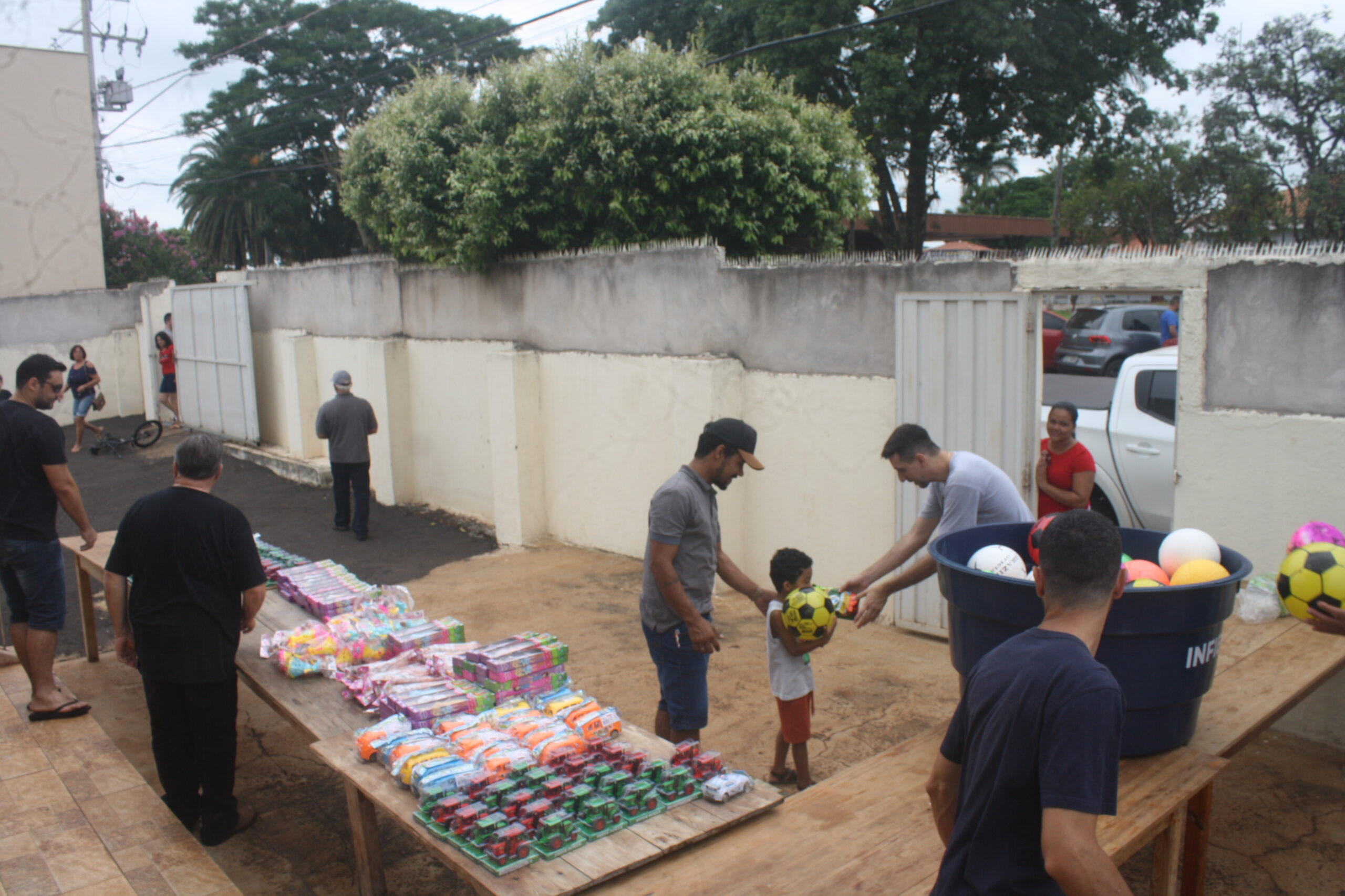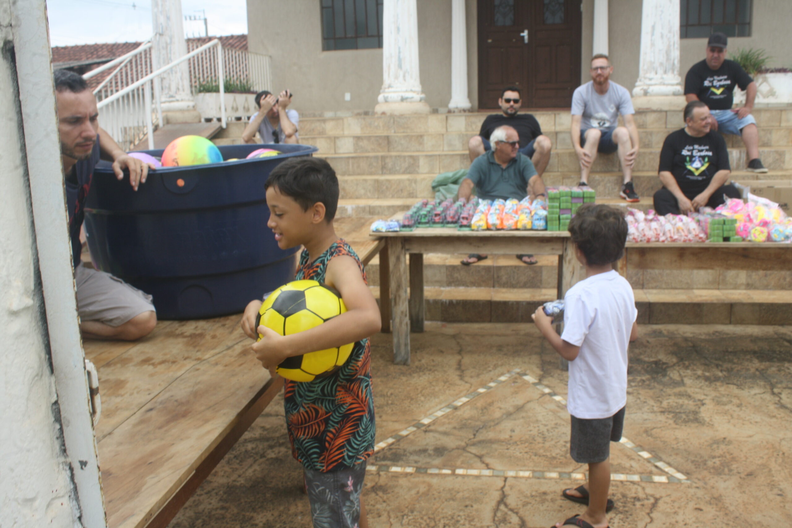 A Loja Maçônica é preparado para atender em torno de 500 crianças. Para arrecadar a quantidade de 500 carrinhos, 500 bolas e 500 salgadinhos, o grupo realiza no centro da cidade o passeio com o trenzinho com o intuito de arrecadar o valor para a compra dos brinquedos citados acima.